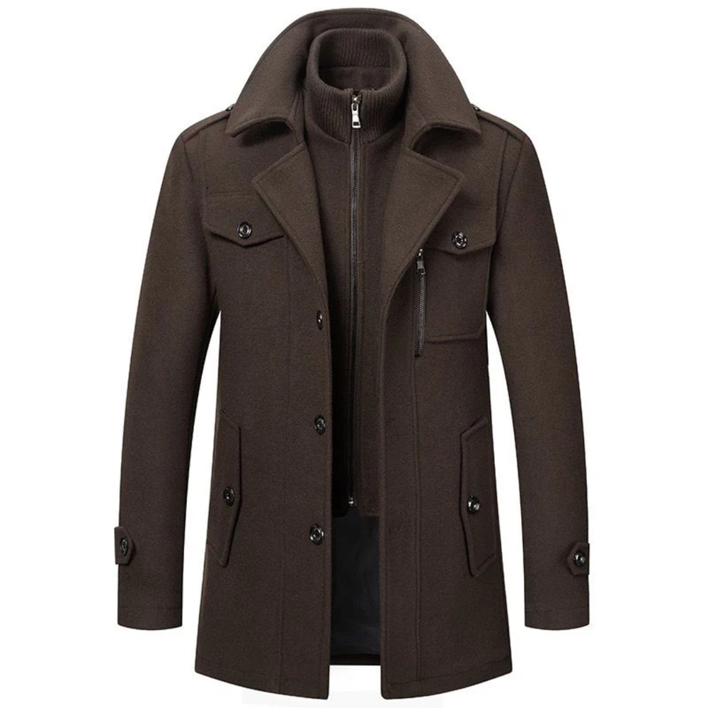 Hier präsentieren wir den zweiteiligen Wintermantel für Herren, eine perfekte Kombination aus Stil und Wärme. Diese stilvolle Herrenjacke schützt nicht nur vor der Kälte, sondern hebt auch Ihren Winterlook mit ihrem eleganten Design hervor.